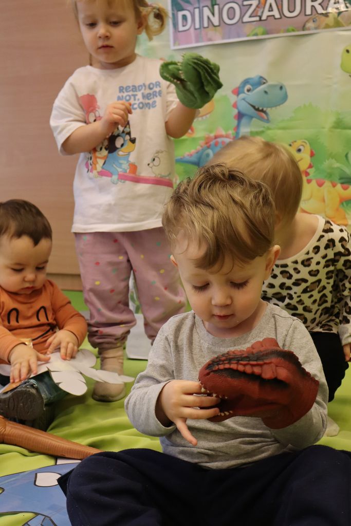Dzień Dinozaura jest doskonałą okazją, aby opowiedzieć dzieciom o dinozaurach, które niegdyś zamieszkiwały naszą planetę. Wszystkie maluszki z grupy Pszczółki wyruszyły na poszukiwania zaginionych dinozaurów, a odważniejsze nawet je nakarmiły:) Celem zajęć było pobudzenie wyobrażni, rozwijania spostrzegawczości oraz koordynacji ruchowej poprzez zabawę. Był to bardzo udany i pełen wrażeń dzień.