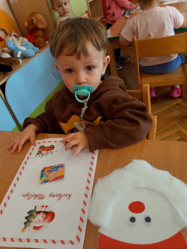 Dzieci z grupy Motylki Miejskiego Żłobka nr 1 w Gorlicach nie mogą się już doczekać odwiedzin Świętego Mikołaja. W oczekiwaniu na jego wizytę wykonały dzisiaj listy do Świętego. Pojawiły się w nich obrazki prezentów i słodyczy jakie nasze Maluszki chciały by dostać. Dzieci były bardzo szczęśliwe. Te zajęcia przyniosły im wiele frajdy.