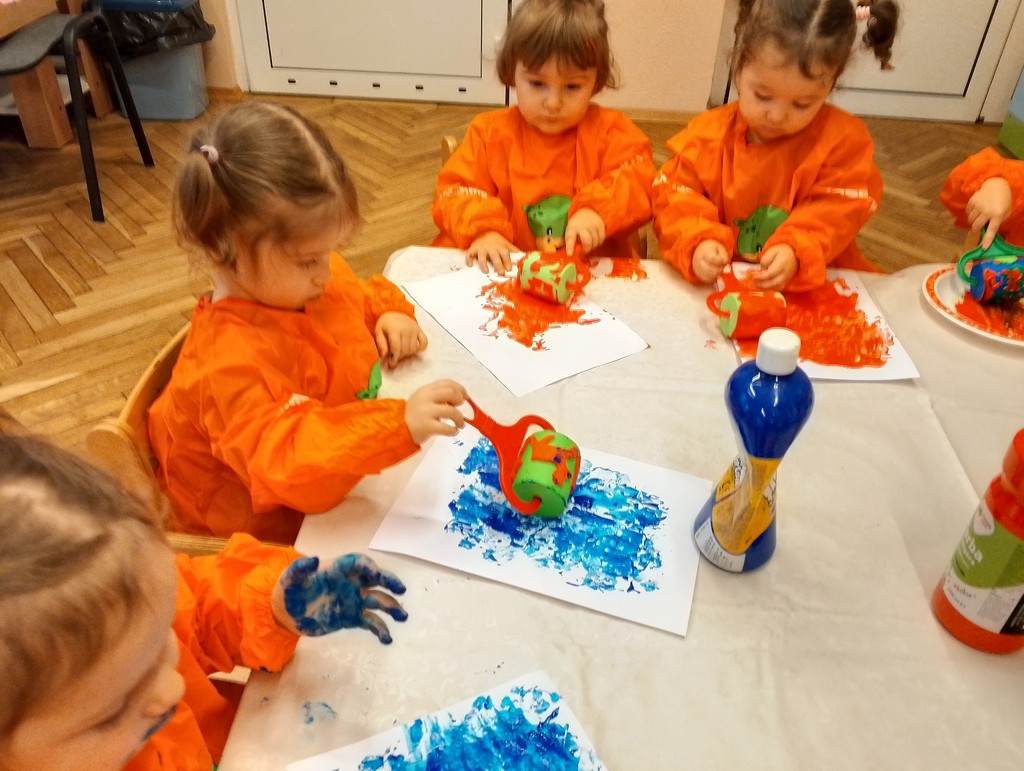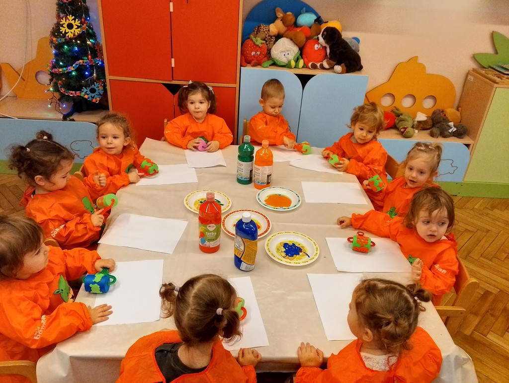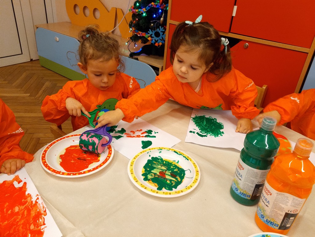 Dzieci z grupy Motylki Miejskiego Żłobka nr 1 w Gorlicach uwielbiają malować farbami. Podczas dzisiejszych zajęć plastycznych Panie zaproponowały dzieciom zajęcia z wykorzystaniem wałków z motywem świątecznym. Nasze Maluszki miały mnóstwo frajdy.