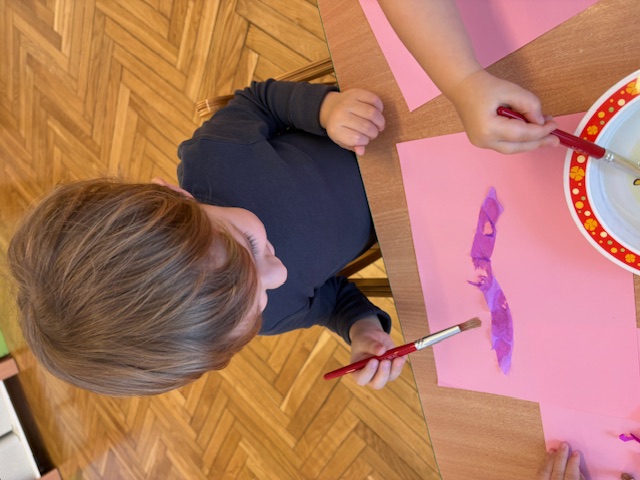 Malowanie bibułą w grupie Motylki